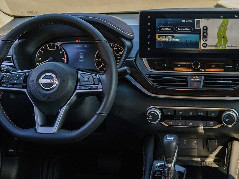 - Nissan Altima S: 16-inch wheels, cloth seats, eight-inch touchscreen